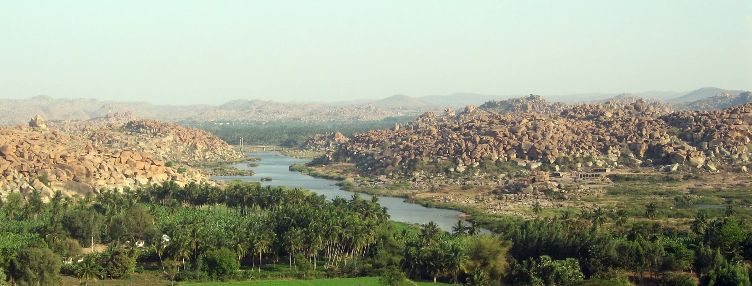 Le Karnataka s’étend sur l’immense plateau du Dekkan. Ses paysages contrastés étonnent les voyageurs : plantations de coton ou de tabacs, canne à sucre et bananeraies au Sud, chaos rocheux et sommets désertiques dans le Nord.