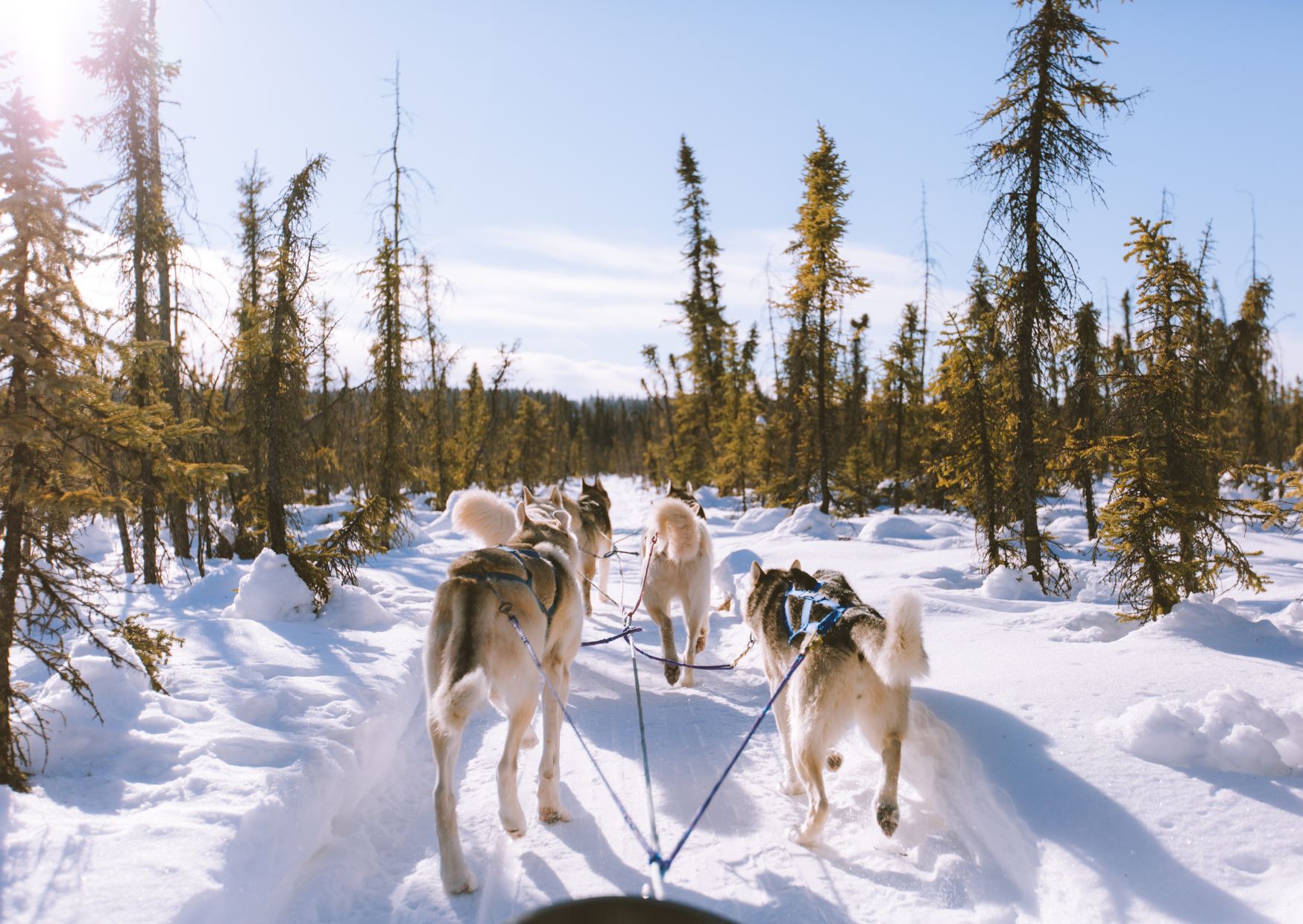 Rien de mieux que de se laisser porter par un traîneau tiré par des huskys et des malamutes, les chiens nordiques traditionnels, à travers les paysages enneigés. Les plus curieux prépareront l’attelage et prendront la place du musher.