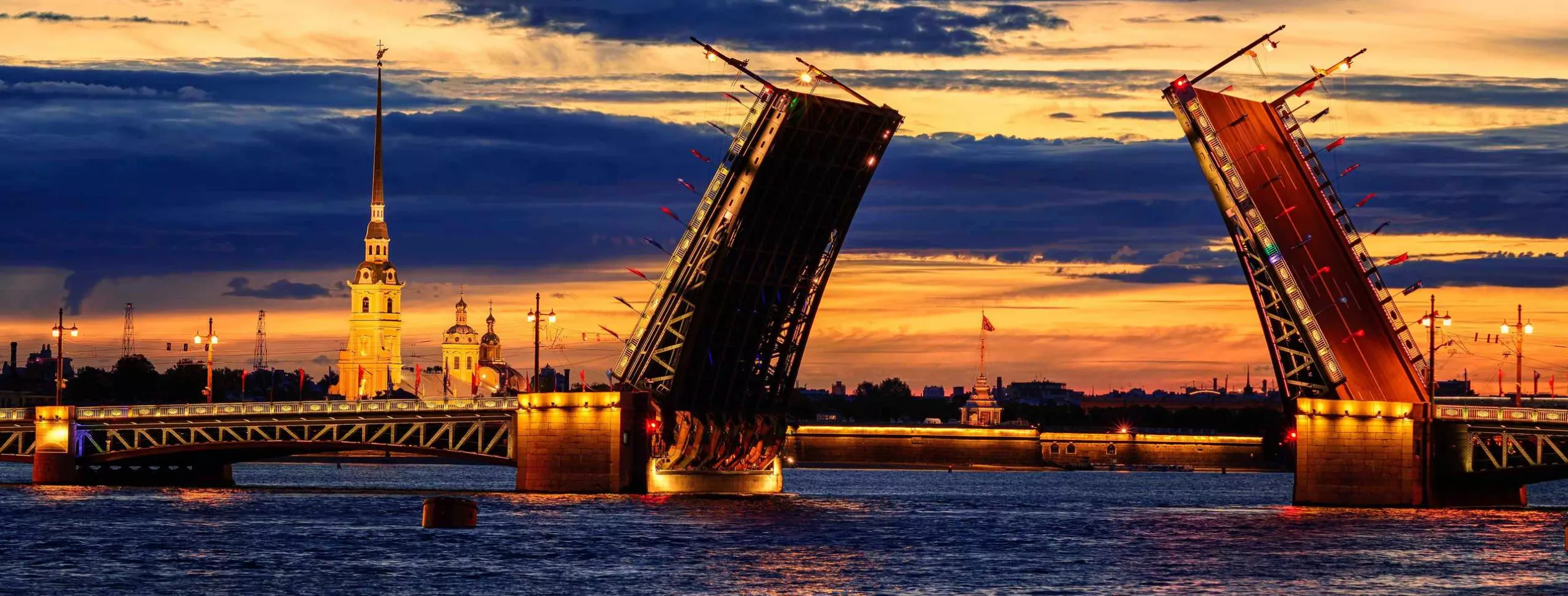 Quand vient le soir, les tabliers des 22 ponts qui enjambent la Néva se lèvent pour laisser passer les cargos, offrant aux visiteurs un spectacle tout à fait étonnant.