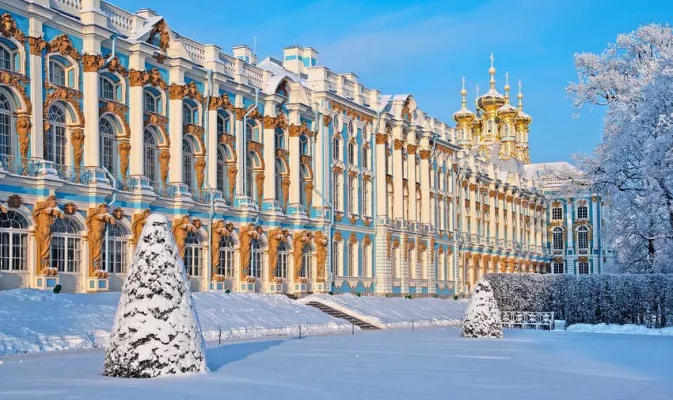 Située à quelques kilomètres au sud de St Petersbourg, la ville de Pouchkine abrite le Palais Catherine, surtout célèbre pour sa chambre d’ambre. Résidence préférée des derniers tsars, le palais est entouré d’un agréable jardin paysager dont on profite été comme hiver.