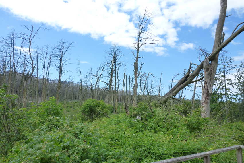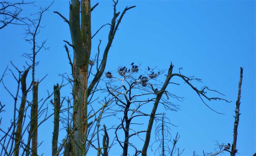 Cette population de bruyants volatiles a modifié le paysage de manière étonnante : en raison de l’acidité du guano, les arbres de la forêt sont morts, conférant à cette colline un aspect de désolation. Tout en haut des troncs blanchis, on peut observer les nids des 4000 cormorans recensés ici.