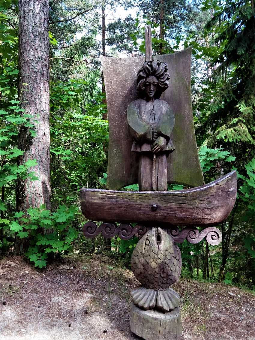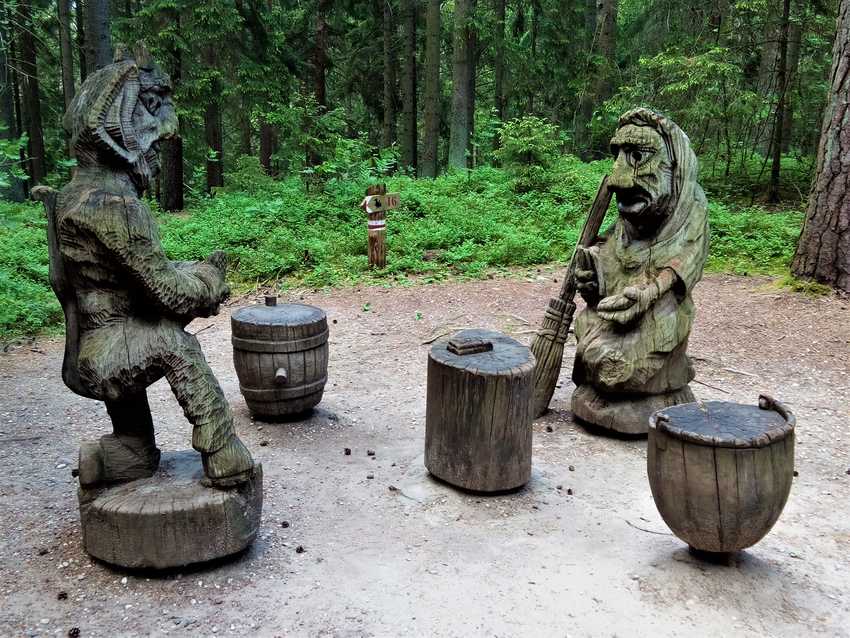 A la fin du 20e siècle, les artisans de la région ont décidé de sculpter des statues à l’effigie des personnages des contes et légendes lituaniens. Le petit sentier serpente entre les arbres et l’on a plaisir à découvrir une nouvelle sculpture de chêne à chaque virage.