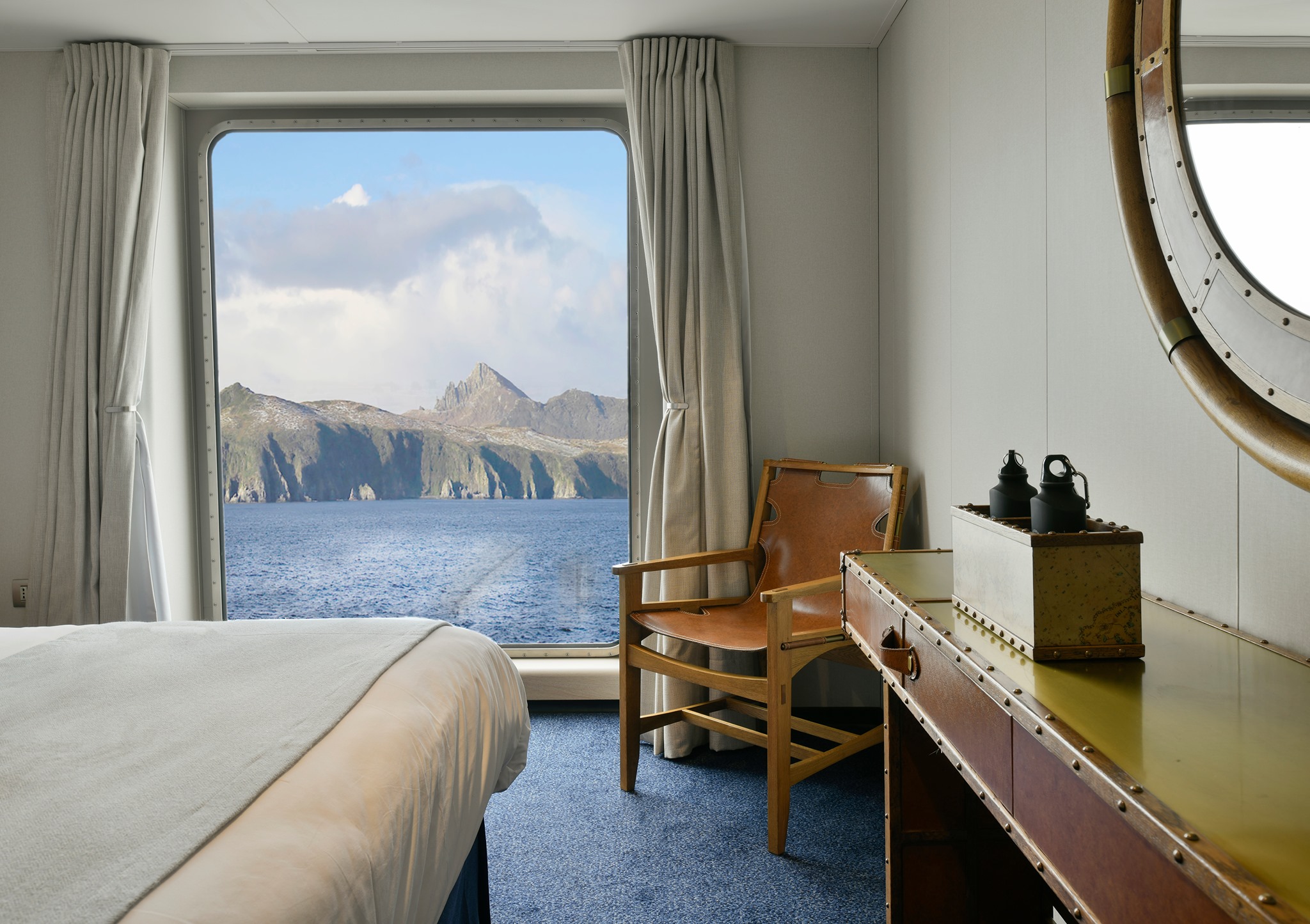 Chaque navire compte quatre cabines « Suites », un peu plus grande (20.5 m²), dotées d’un coin salon et d’une baie vitrée allant du sol au plafond.