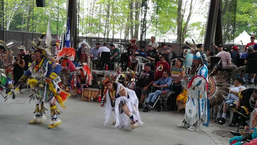 Les food-trucks proposent gibier et queues de castor, dans une ambiance très chaleureuse ! La grande entrée est un moment fort du Pow Wow, avec une danse d’ouverture solennelle où sont présentés les drapeaux de chaque Nation.