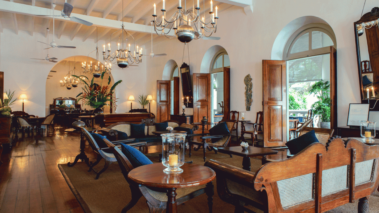 L’Amangalla est l’adresse la plus prestigieuse de Galle, datant de 1860. La salle de réception est à l’image de l’hôtel : parquet en bois exotique, mobilier colonial, lustres hollandais...