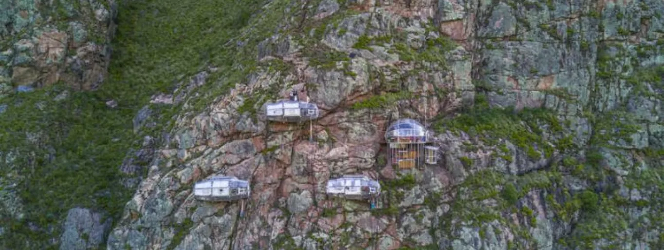 C’est dans d’étranges capsules transparentes, construites en aluminium aérospatial et en polycarbonate, que vous passerez la nuit. Accrochés ainsi à flanc de falaise, suspendus à 400 m au-dessus du sol, mieux vaut ne pas avoir le vertige !!