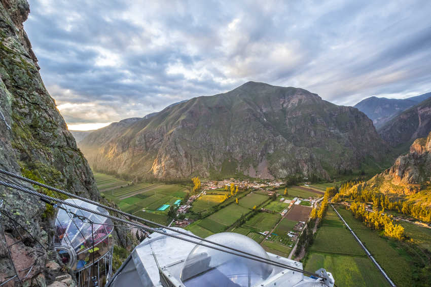 C’est en plein cœur de cette vallée, tout proche du charmant petit village Inca d’Ollantaytambo, que se niche un des hôtels les plus originaux du Pérou : le Skylodge Adventure Suites !