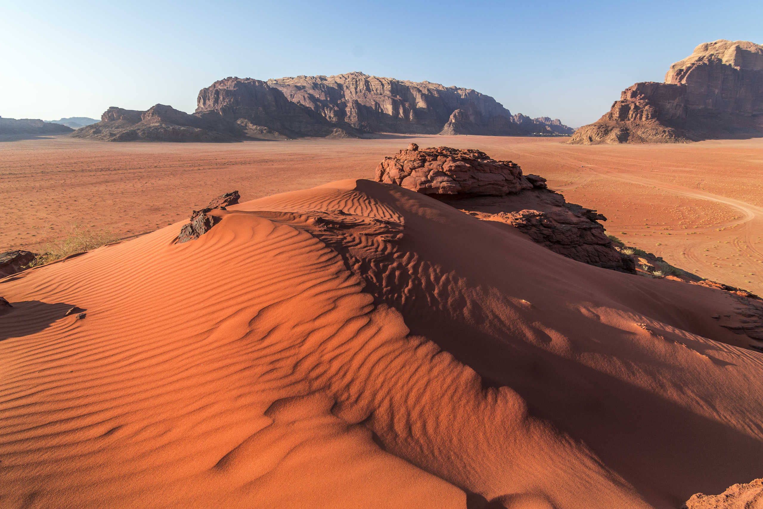 Imaginez, devant vous se dressent des formations rocheuses de plus de 1700 mètres, des dunes de sable ocres, des arches de pierre enjambant des canyons… non, vous n’êtes pas sur Mars, mais bel et bien sur Terre, dans le désert du Wadi Rum.